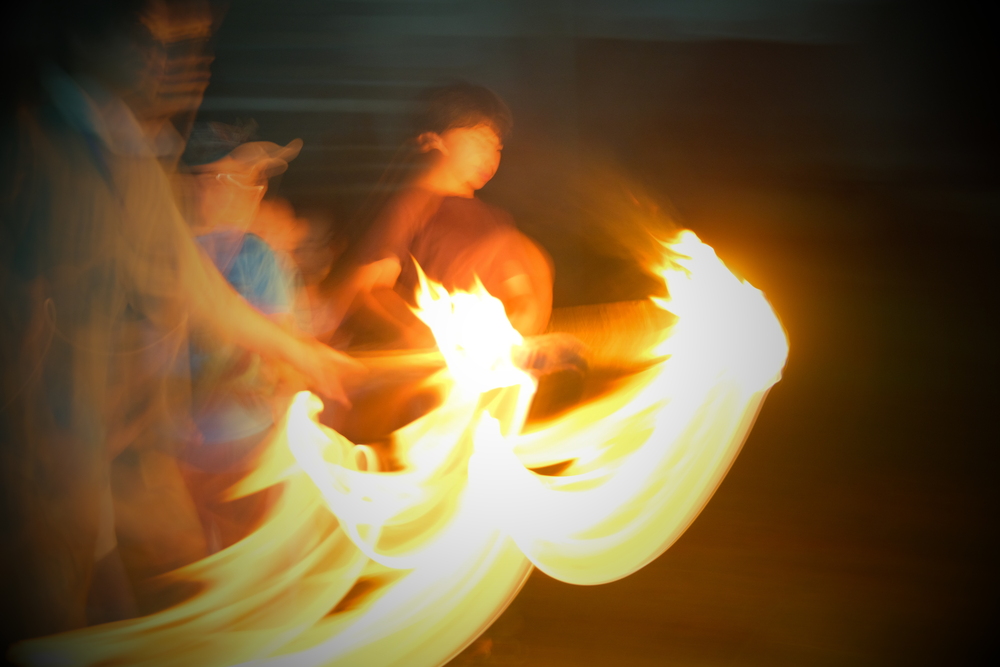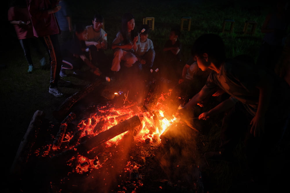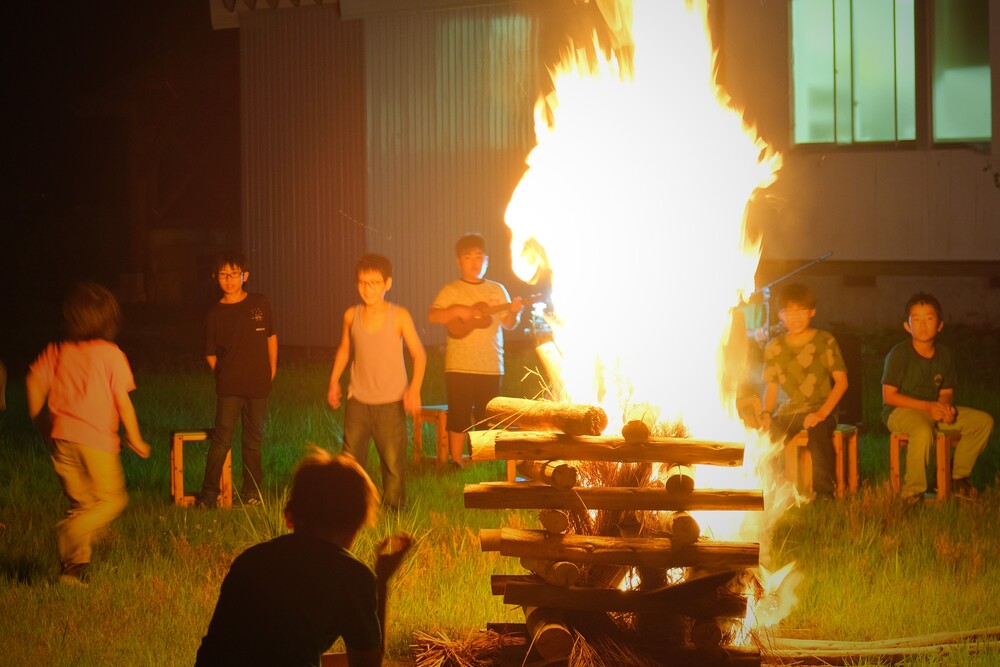 音楽に合わせてみんなで火を囲んで盛り上がりましょう!