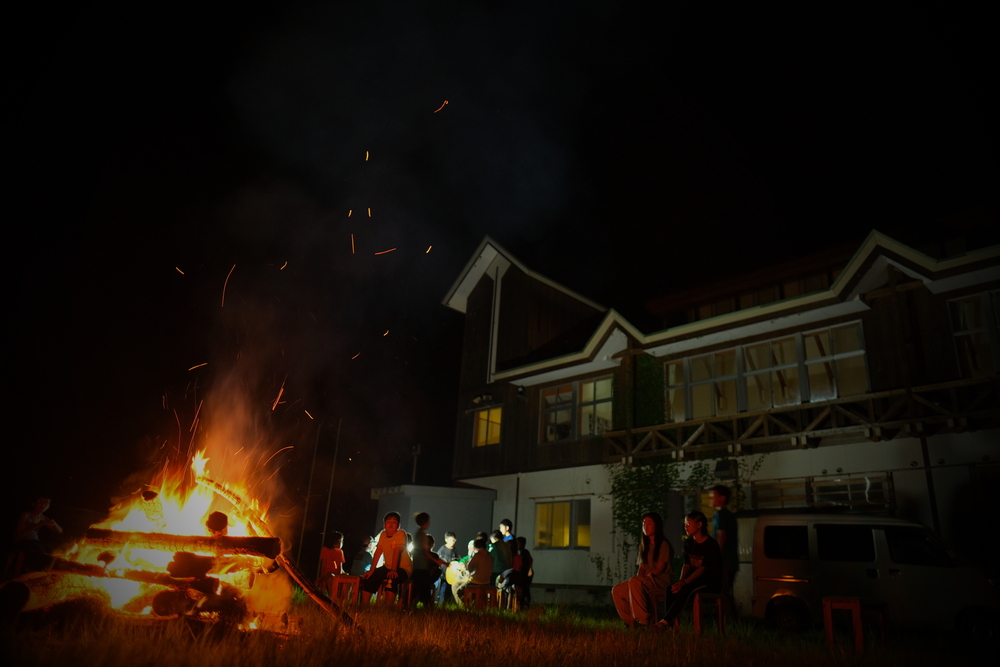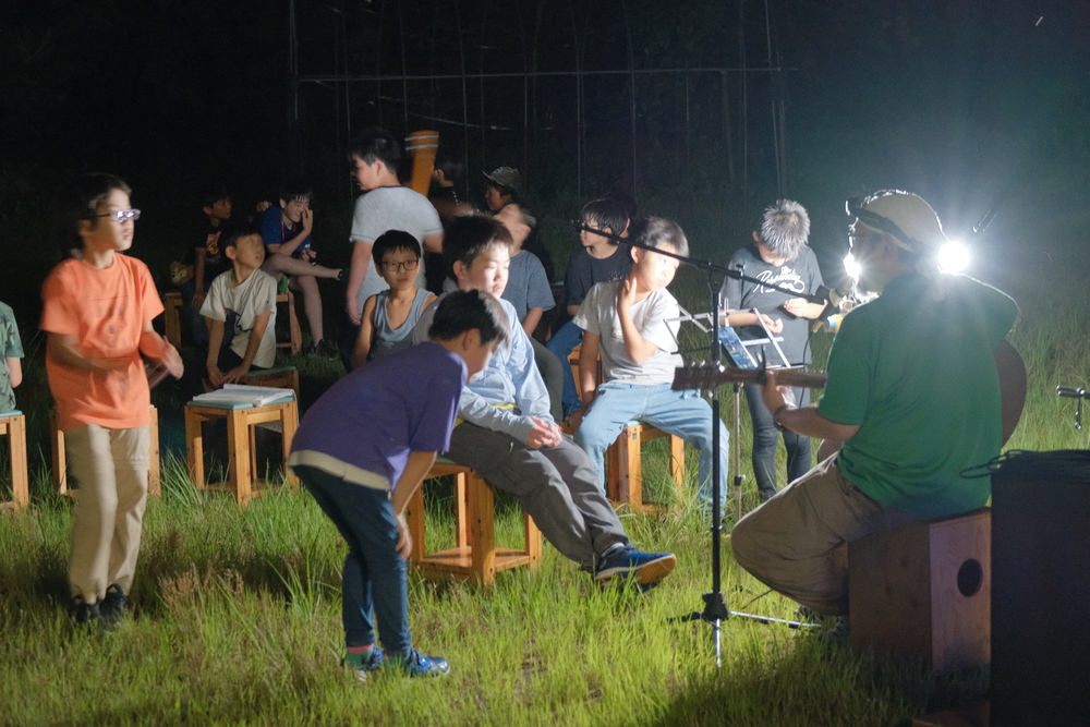 キャンプファイヤー点火後は、ギターの演奏などのいろんなステージショーを企画中。